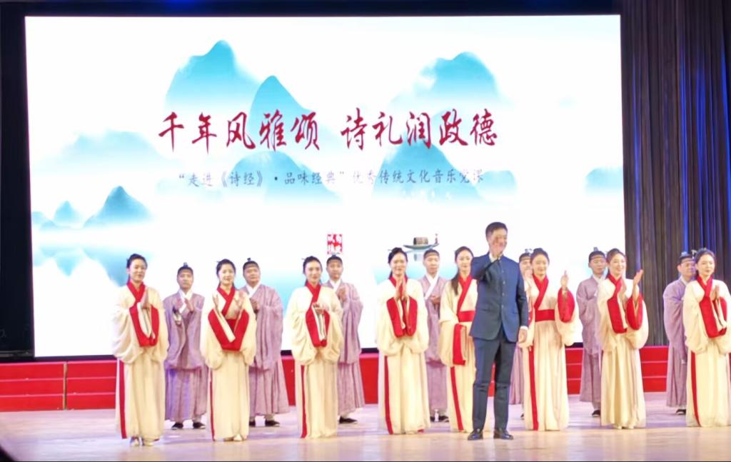 学子们对文化传承与思想建设的积极态度。此次《千年风雅颂,诗礼润政德》音乐党课的成功举办,让大家可以在传统文化中汲取精神养分,同时也增强了党团组织的向心力与归属感,标志着我院在党团协同育人、文化浸润思政方面又迈出了坚实的一步。