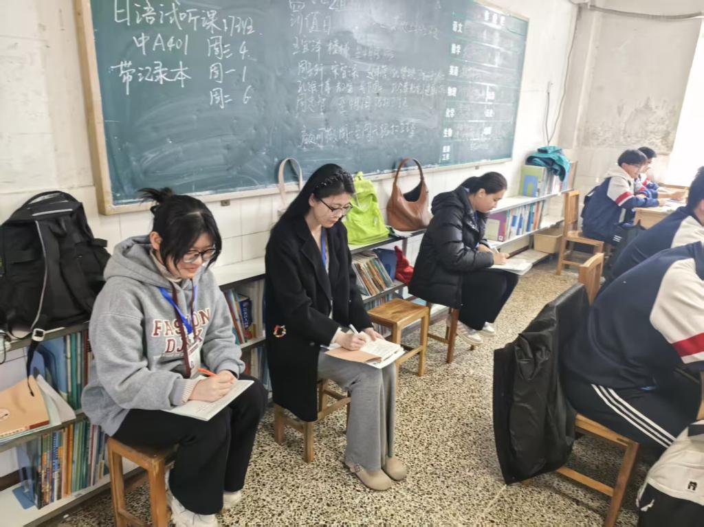 王慧老师组的张金慧、卢扬、金敏、昝雨欣四位同学,则走进班级聆听以《榜样的力量》为主题的心理健康教育课,本节课由经验丰富的王慧老师执教,课堂氛围轻松活跃,教学形式丰富多样,通过励志故事分享、典型案例分析、小组交流讨论等环节,引导学生深刻理解榜样的内涵与价值,让观摩的实习生们深受启发。