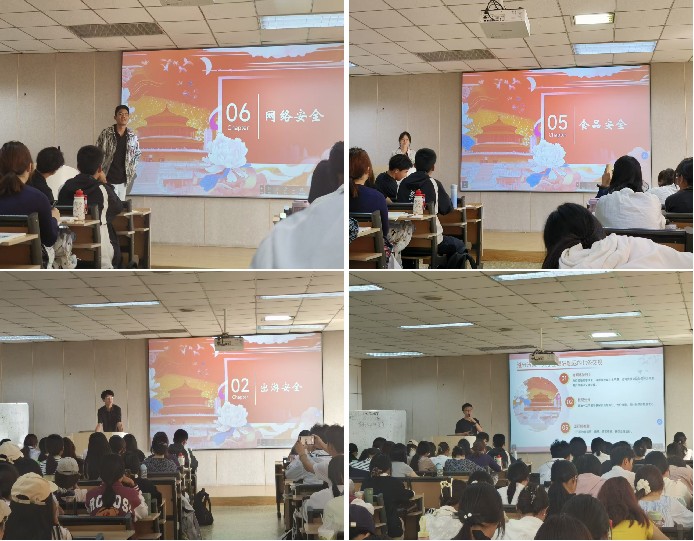 关于2025国庆、中秋假期的具体时间安排,并就离校流程、请销假制度进一步详细说明,提醒学生严格遵守请假制度,离校前务必报备去向并保持通讯畅通。其中25级新生作为入学后的第一个长假,在年级内部通过学生亲身讲解、辅导员补充案例等形式,重点剖析了学生假期可能存在的安全隐患,如兼职诈骗、网络谣言传播及夜间出行风险等,进一步强化了学生的防范意识。