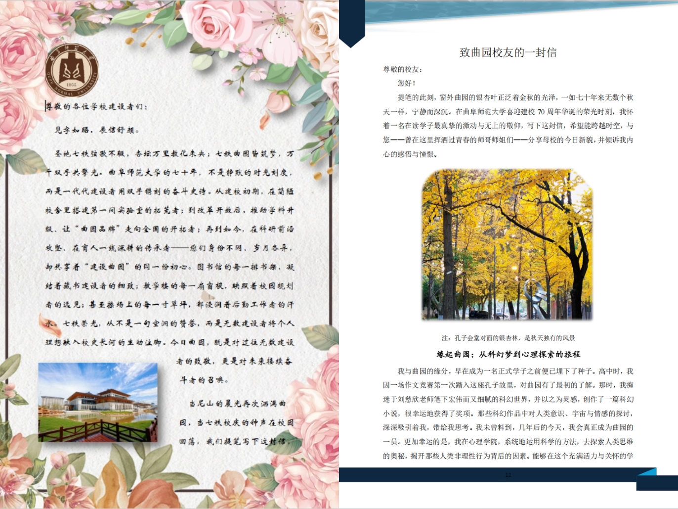 本科生纷纷致信校建设者,争先讲述曲师大70周年校庆与色色视频
