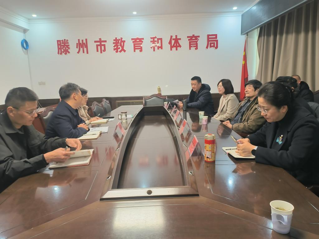 图1 朱书记和王院长与滕州市教育和体育局座谈现场